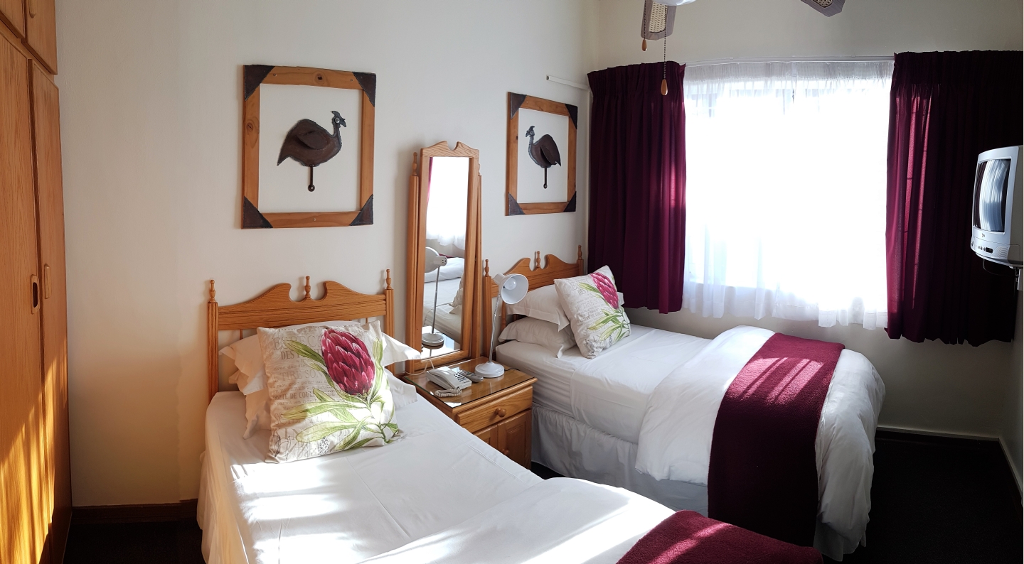 Our spacious family units are fully self-catering and ideal for longer stays. Each unit includes two bedrooms, a lounge, and a fully equipped kitchen with stove. The main bedroom has a double bed, and the second bedroom has two single beds. Sleeps up to 4 guests comfortably, with air conditioning, free WiFi and TV included.